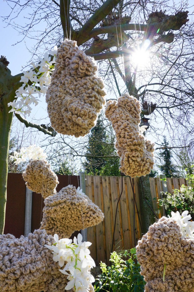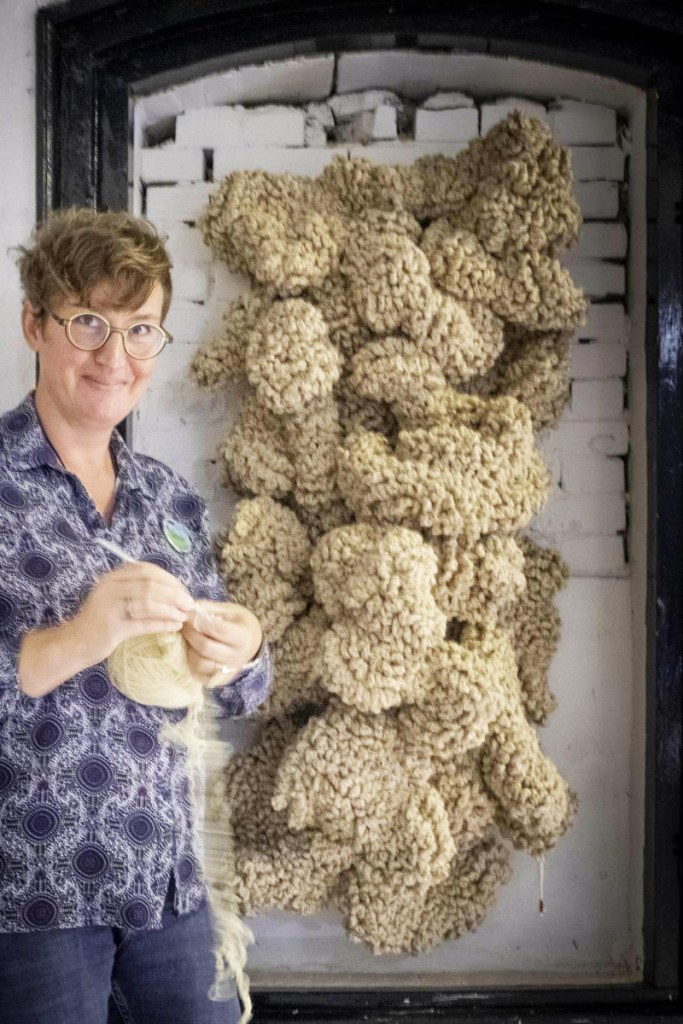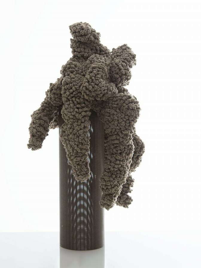 Deze serie objecten is ontstaan uit het gevoel al hakend te beeldhouwen met textiel. De objecten zijn, zoals bijna al mijn werk, geïnspireerd door de natuur. Deze werken zijn de voorlopers van het object ‘Wol in beweging‘.