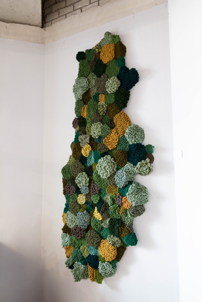 Dit werk staat voor mijn liefde voor natuur. Ik moet altijd groen om me heen hebben om me goed te voelen. Bomen en bossen spelen daarin een grote rol. Het is geïnspireerd door een drone-opname van een oerwoud in Zuid-Amerika, waar je van bovenaf op het bladerdak van het oerwoud kijkt.