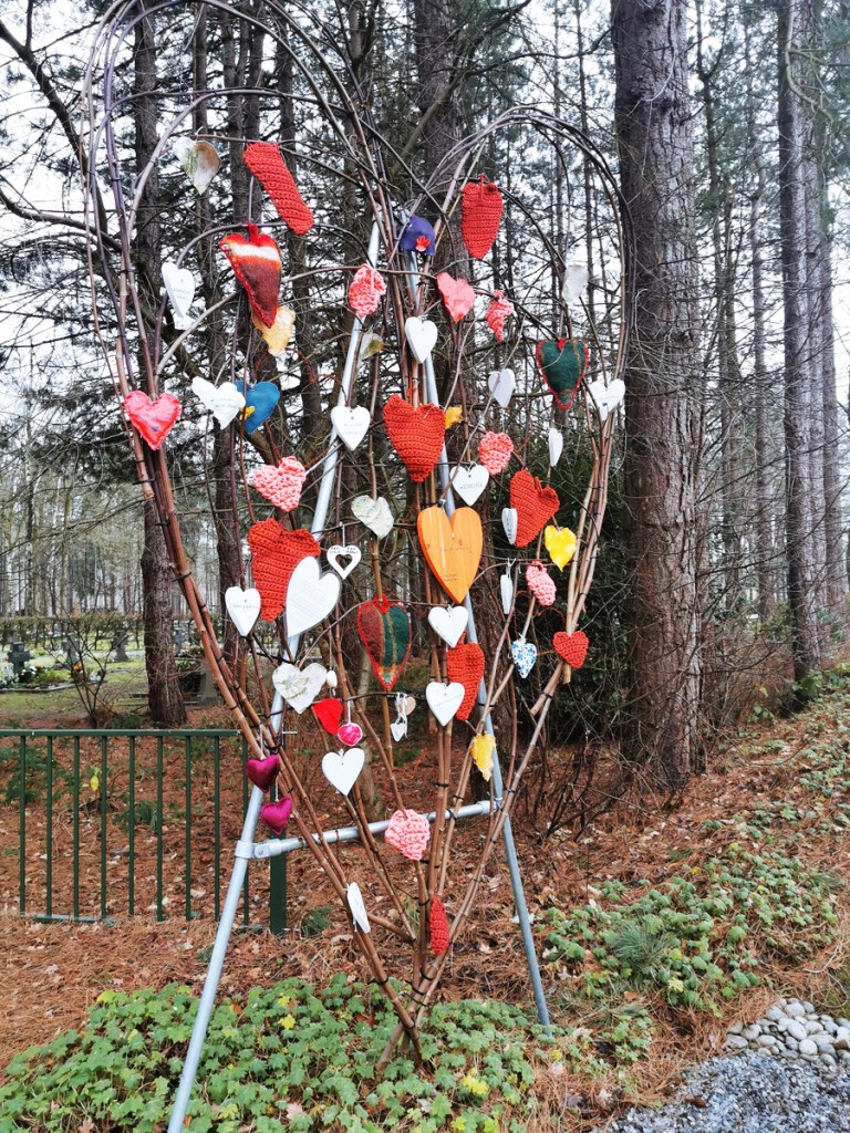Met het landelijke project ‘Aandacht voor elkaar’ (oktober 2020) stond het crematorium in Bergen op Zoom stil bij de slachtoffers van het coronavirus. Honderd kleinere harten konden één jaar lang aan het kunstwerk hangen door nabestaanden die vanwege de aangescherpte coronamaatregelen geen passend afscheid hebben kunnen nemen van een dierbare.