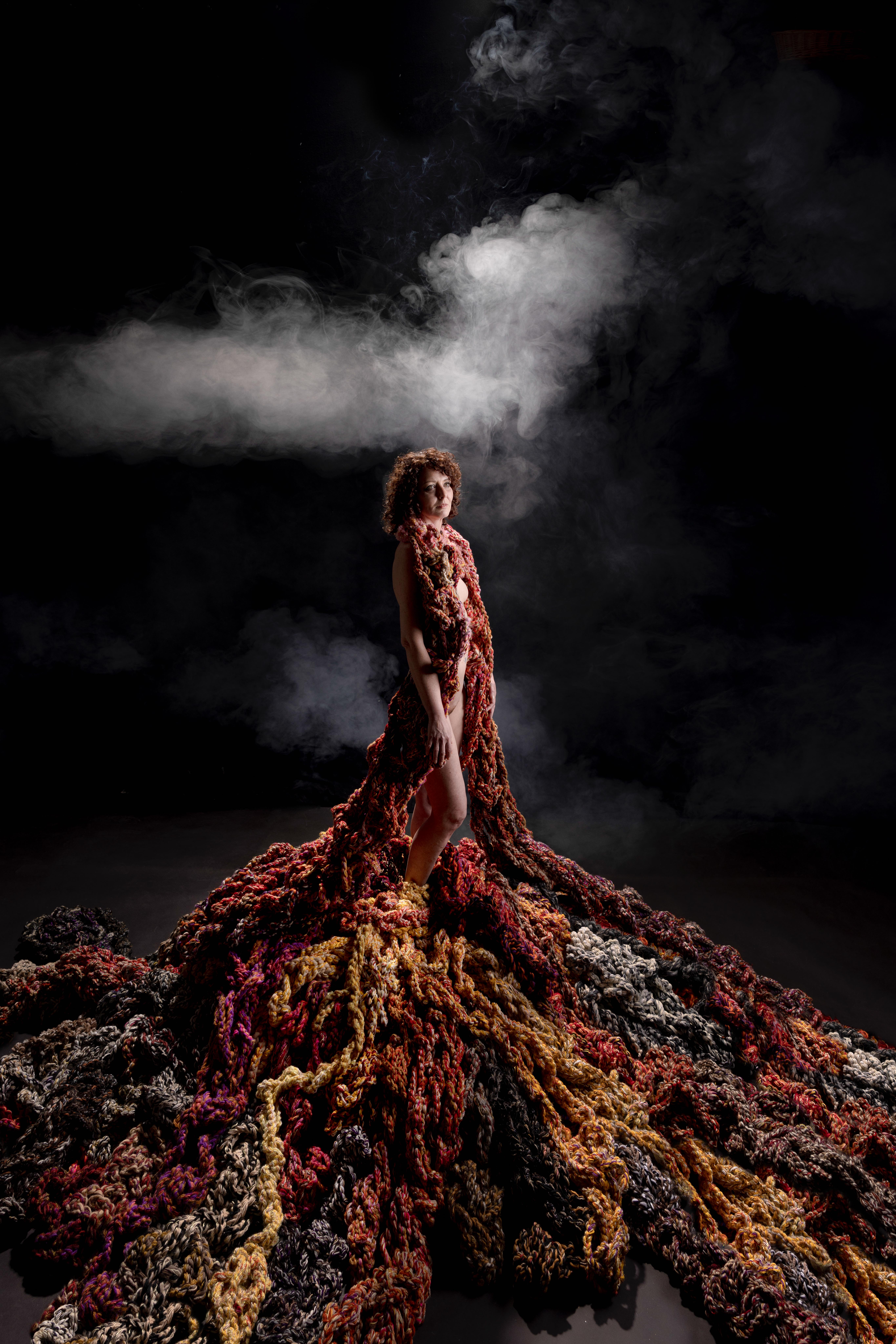 De tentoonstelling Hete Vuren bestond uit de subcategorieën ambachtelijk vuur, huiselijk vuur en vernietigend vuur. Ik liet mijn werk onder ambachtelijk vuur vallen, wat mij de doorslag gaf om een fotoshoot te organiseren in de bronsgieterij van Léon Vermunt in de Wouwse Plantage. Fotograaf Hans Lunenburg, 2023