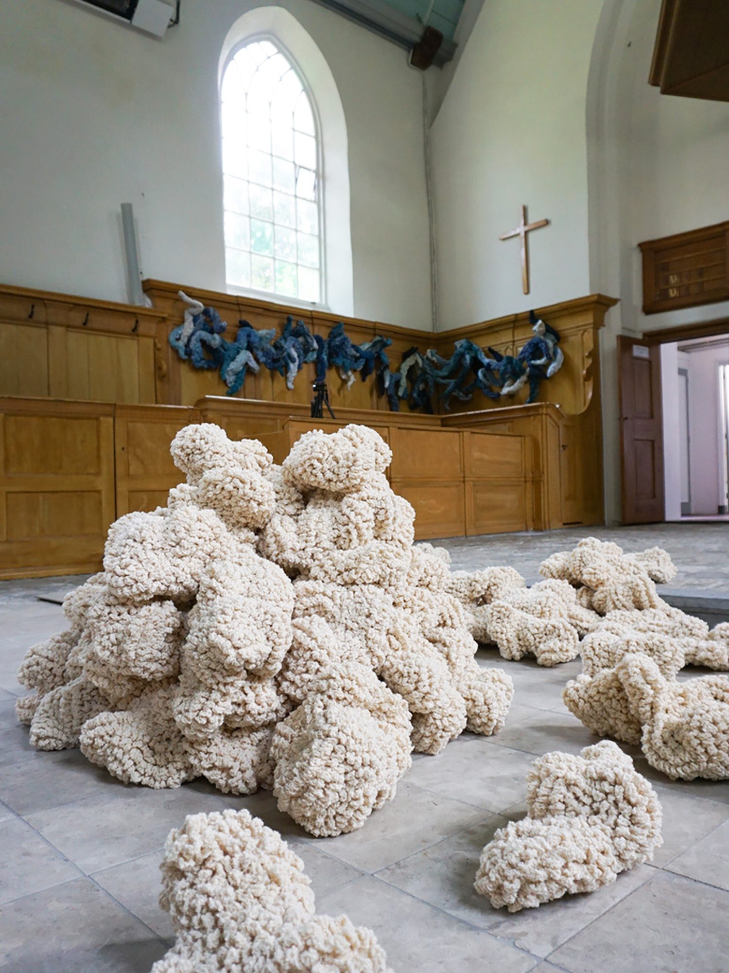 Wol in Beweging in de Corneliuskerk in Noordwelle, tijdens Kunstschouw 2022